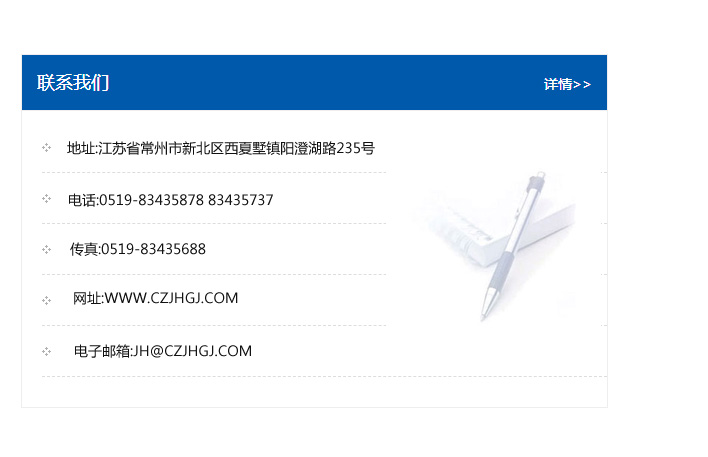 傳真:0519-83435688    郵編:213135    網址:WWW.czjhgj_com.csdchggs.com    電子郵箱:JH@czjhgj_com.csdchggs.com